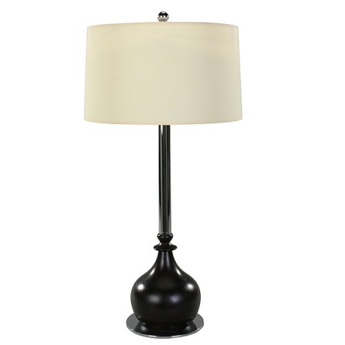 - A sleek, slender steel stem is poised atop a graceful wooden ball foot in this uniquely contemporary table lamp design- 3-way 100-watt bulb(not included) allows you to adjust for reading or ambient lighting